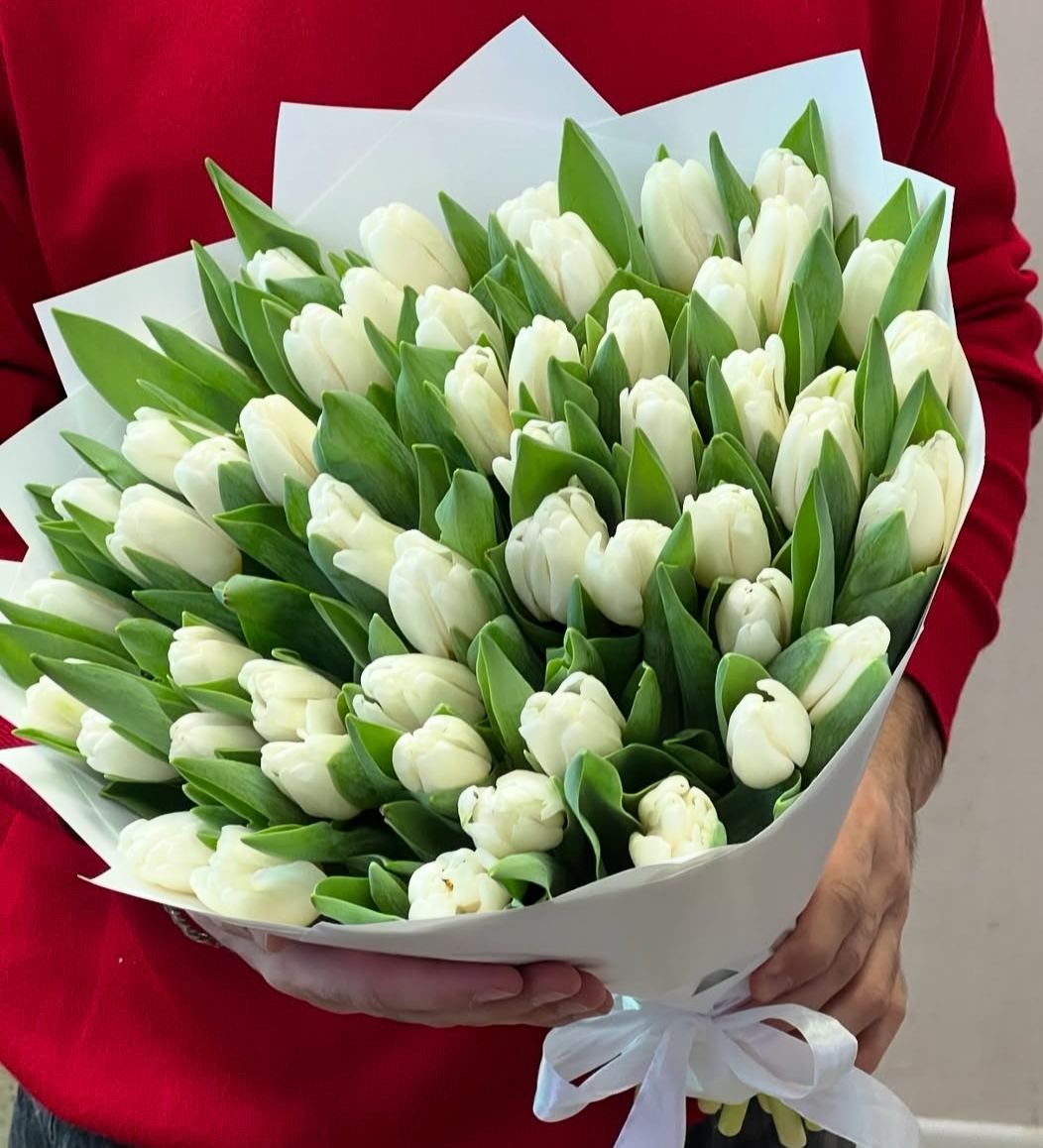 61 adet zarif beyaz lale buketi