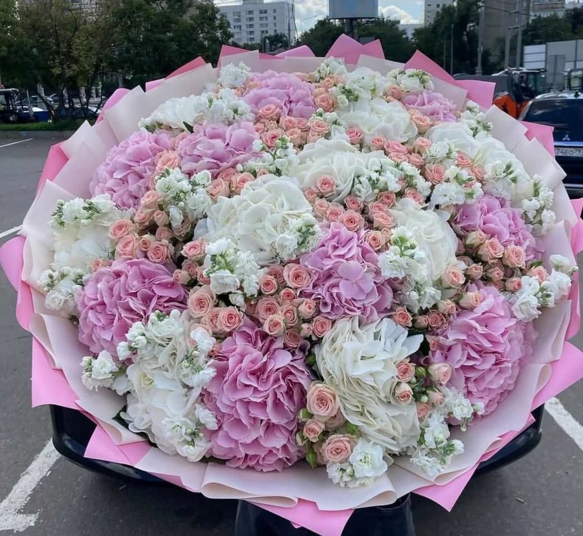 Ortanca ve kaliteli Hollanda güllerinden oluşan buket